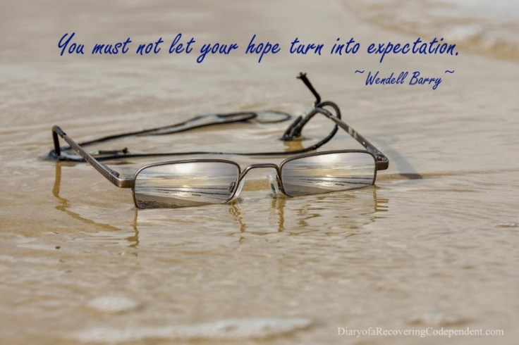 1. Interesting thoughts to consider. I tend to think of hope as believing in the possibility that my desire will ? can happen. But this is a good reminder to not expect it, not to plan on it when it involves another person’s choices. We do have other things to focus on, like our own choices and our own serenity. Yeah. I needed this.